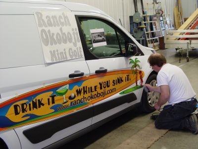 Okoboji Graphics decal and vehicle wrap installation service.