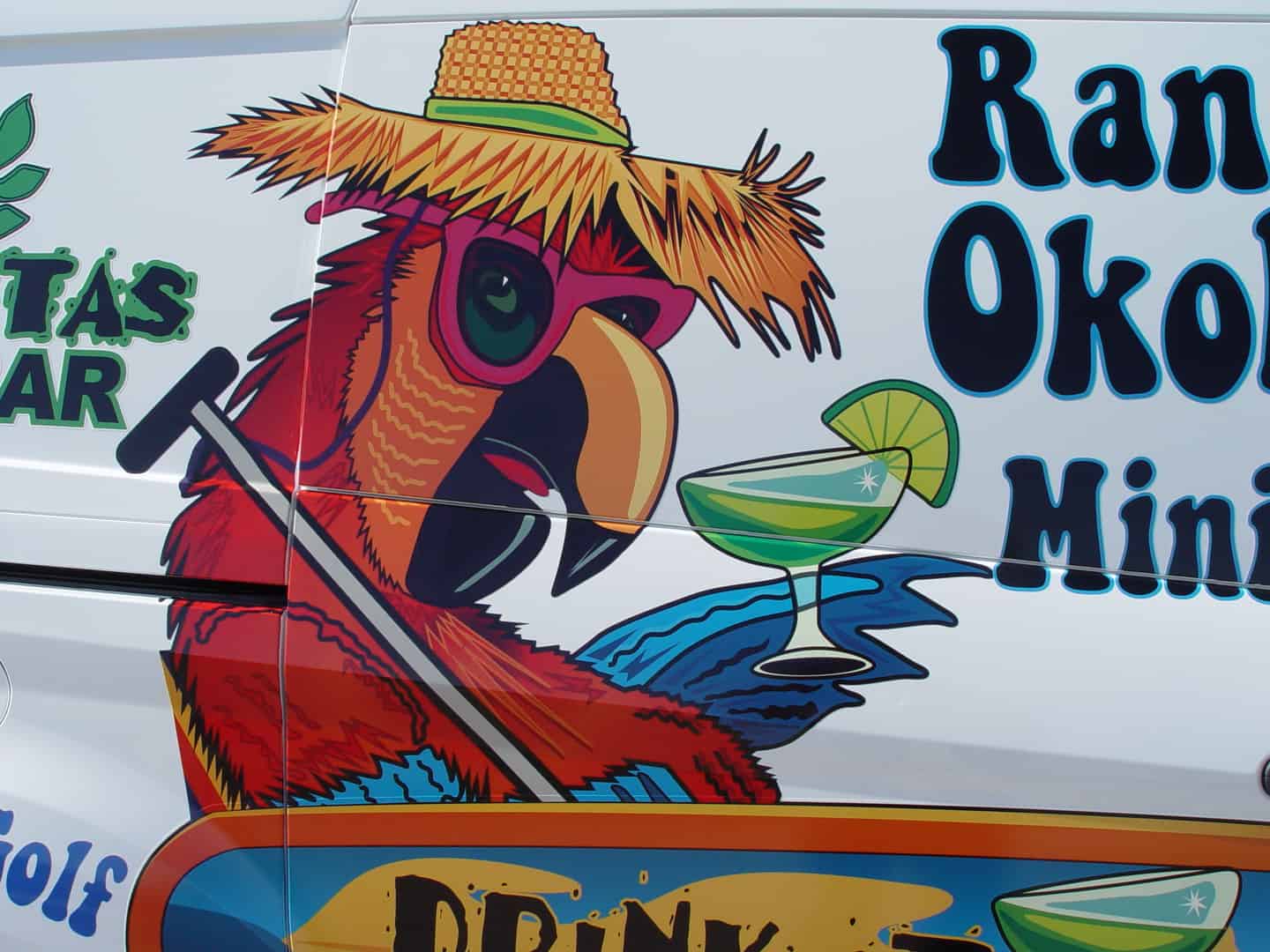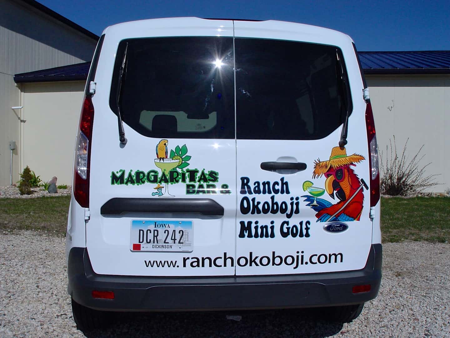 Ranch Okoboji Margaritas Bar and Mini Golf logo decals installed on van doors at OkobojiGraphics.com